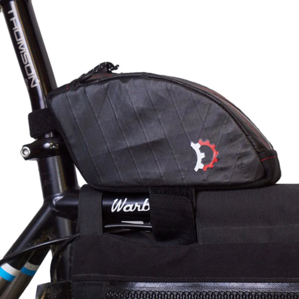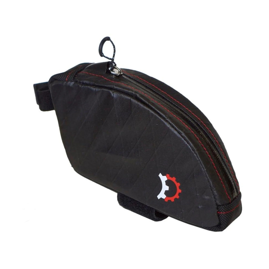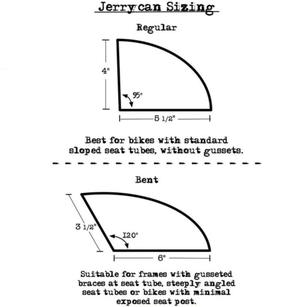 Need just a wee bit more carrying space on your bike? Look no further. The Jerrycan® is a slim, rear-mount bag ideal for a repair kit, lube or a tube -- leaving more space for essentials in a frame bag. The Jerrycan® comes in two models: Regular and Bent. The Bent accommodates gusseted braces at the seat tube / top tube junction. The Regular is the go-to for most other bikes.
