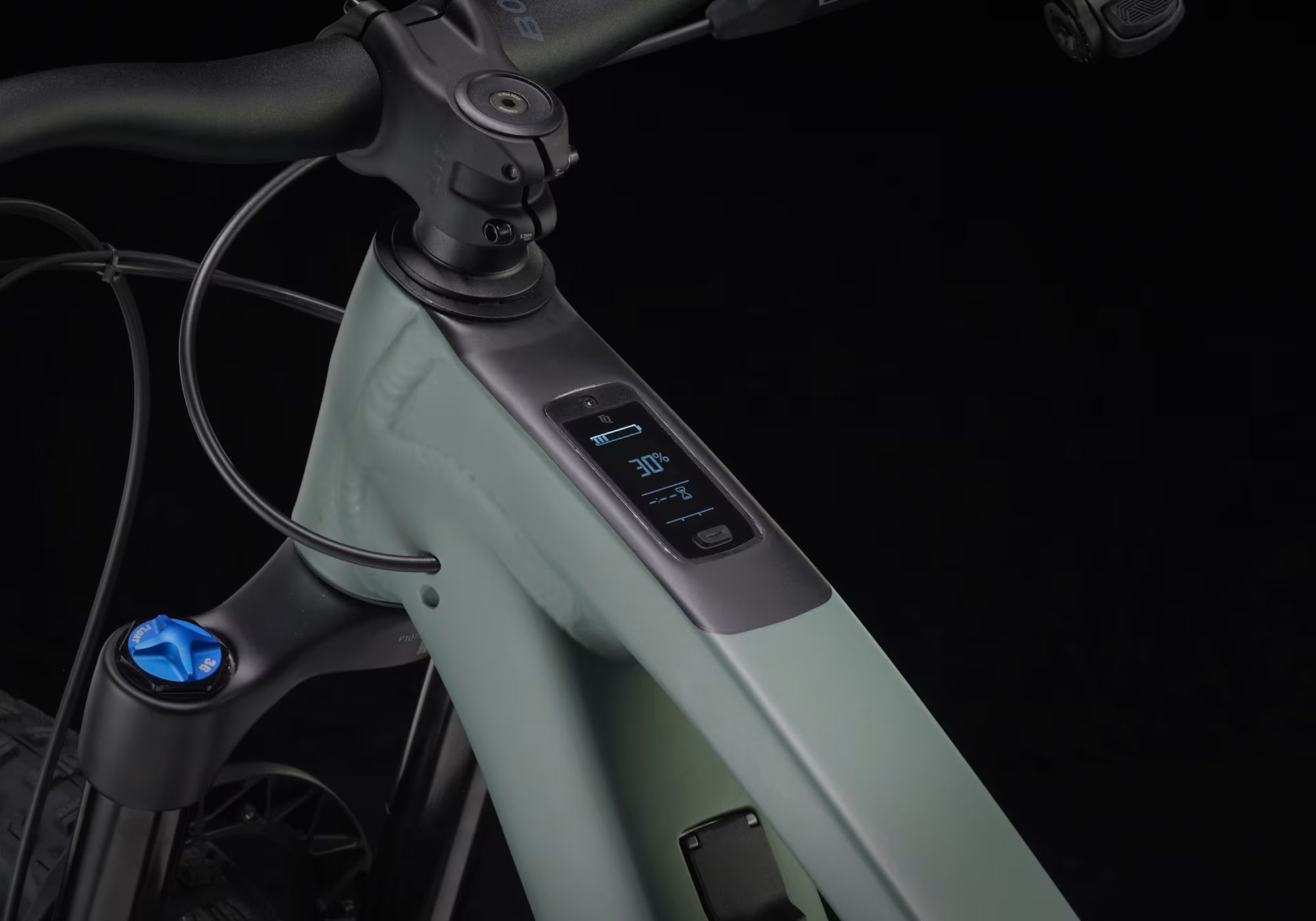 Like its carbon counterpart, it looks and handles like a traditional trail bike, but with the added support of a tiny-but-mighty harmonic pin ring drive system with sleek top-tube display unit and compact remote. It comes ready to rip with upgraded parts where they matter most, like a FOX suspension package, wide Bontrager Line Comp Tubeless Ready wheels and SRAM's 12-speed wireless GX AXS transmission.