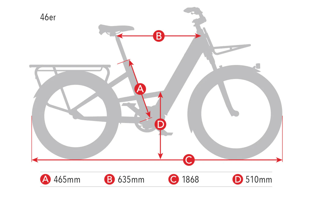 26″ in the front for extra comfort and control, and 24″ in the back for strength and a lower center of gravity. All powered by the Bosch CX / Speed and a 500Wh intube battery. Born of true Etility® Design, the 46er is reshaping the future of the ebike.