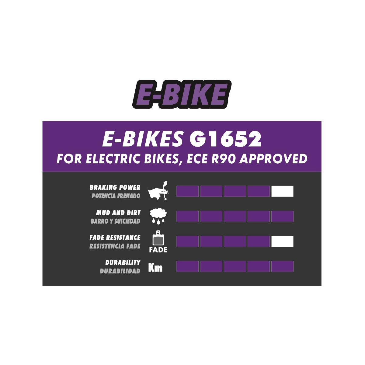 The new G1652 compound stands out for its resistance to high temperatures, strong braking power, exceptional durability and absence of noise. It has been developed specifically to meet the added demands placed on braking systems by the additional speed and weight of electric bicycles.