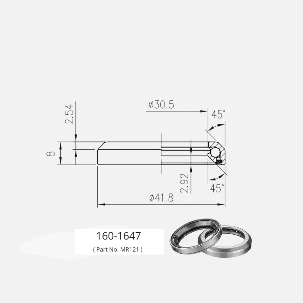 Commonly found 1 1/8" chrome steel headset bearings by FSA.