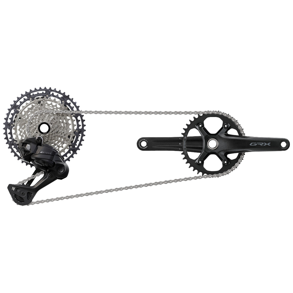 At the heart of it all is the fully wireless GRX RX717 rear derailleur that pairs seamlessly with a 10-51T 12-speed cassette. It features a wide link structure, durable aluminum skid-plate design, and built-in Automatic Impact Recovery function, which allows the rear derailleur to instantly return to its original position after an impact. This derailleur withstands the rigors of off-road riding while retaining its lightning-quick and ultra-precise shifting performance.