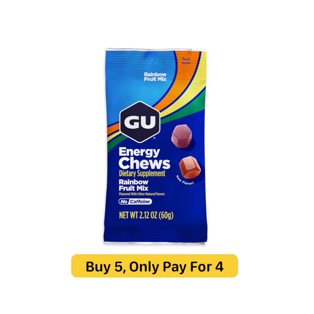GU Energy Chews are crafted to supply both energy and key nutrients like electrolytes and amino acids to keep you feeling strong and energized. Delicious, mouthwatering flavors help you stick to your nutrition plan, so you can keep going. Energy Chews have similar nutrients per serving to the original GU Energy Gels, delivering the energy you need in chewable, bite-sized pieces.