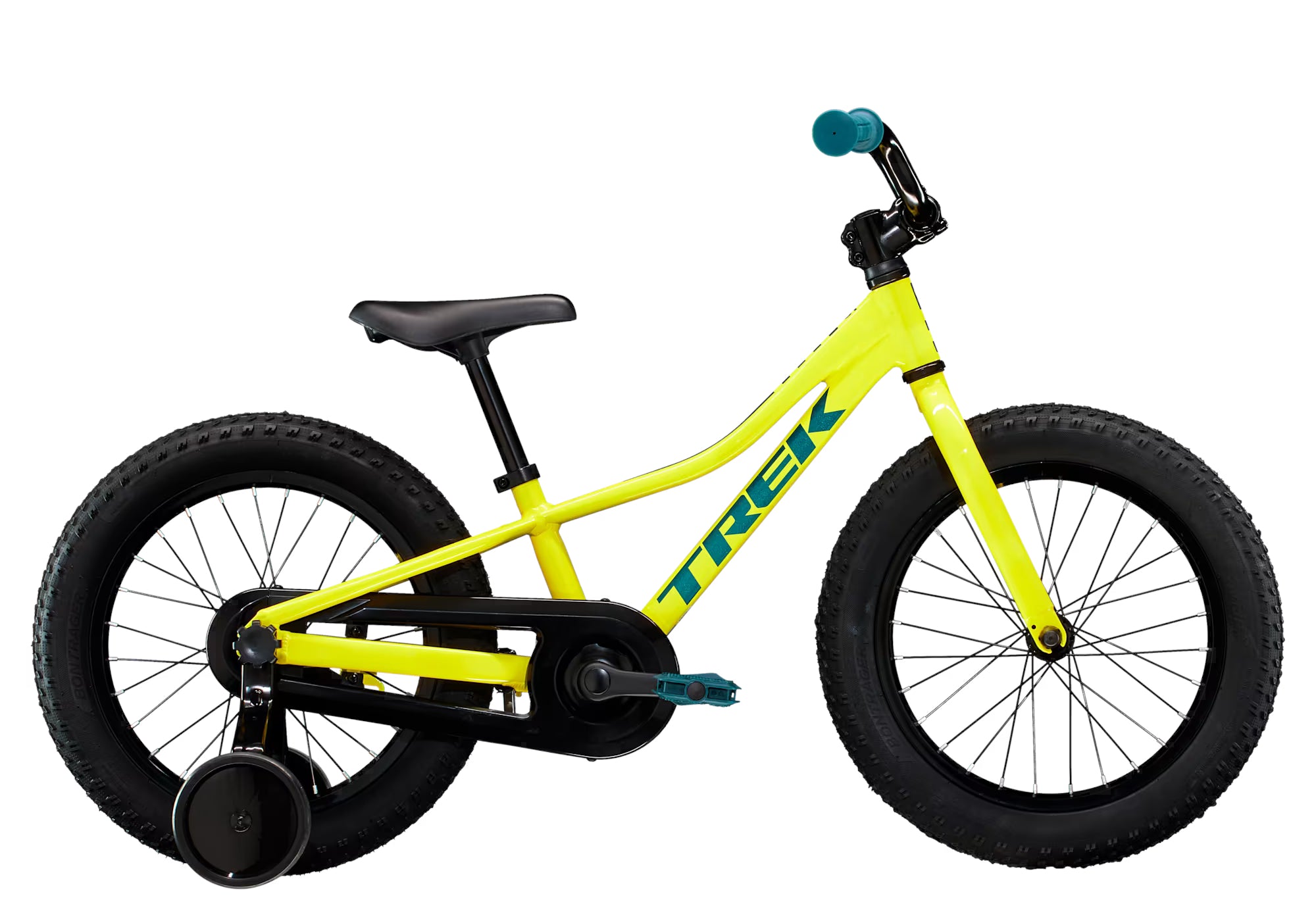 Teaching and learning to ride is a breeze with Precaliber 16. It has a handle built into the saddle so you can guide while they ride, and tool-free training wheels that are super easy to install and remove. It's a great fit for kids aged 4-5, between 39–46˝ (99–117 cm) tall.