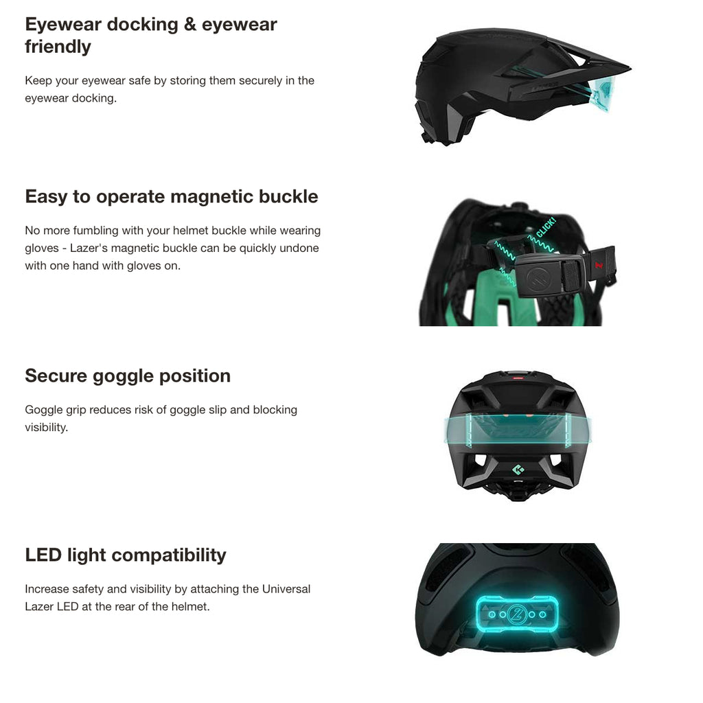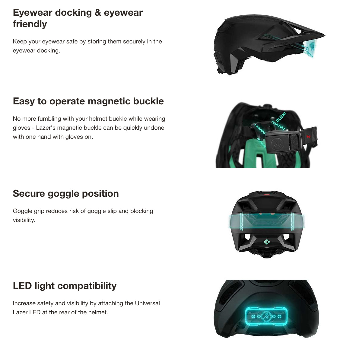• No more fumbling, Lazer's magnetic buckle can be quickly undone with one hand with gloves on