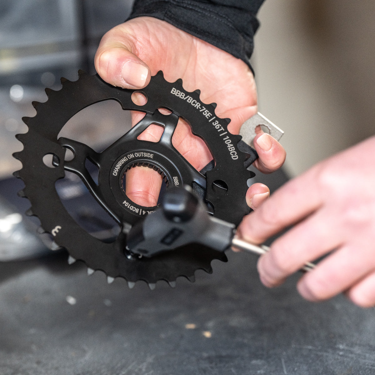 A super handy tool to keep the bolts of your chainring in place while tightening them. A smart little tool for a common problem. The struggle with chainring nuts is over from now on! The BoltGrip keeps the nuts in place while you can easily tighten the bolts from the front.