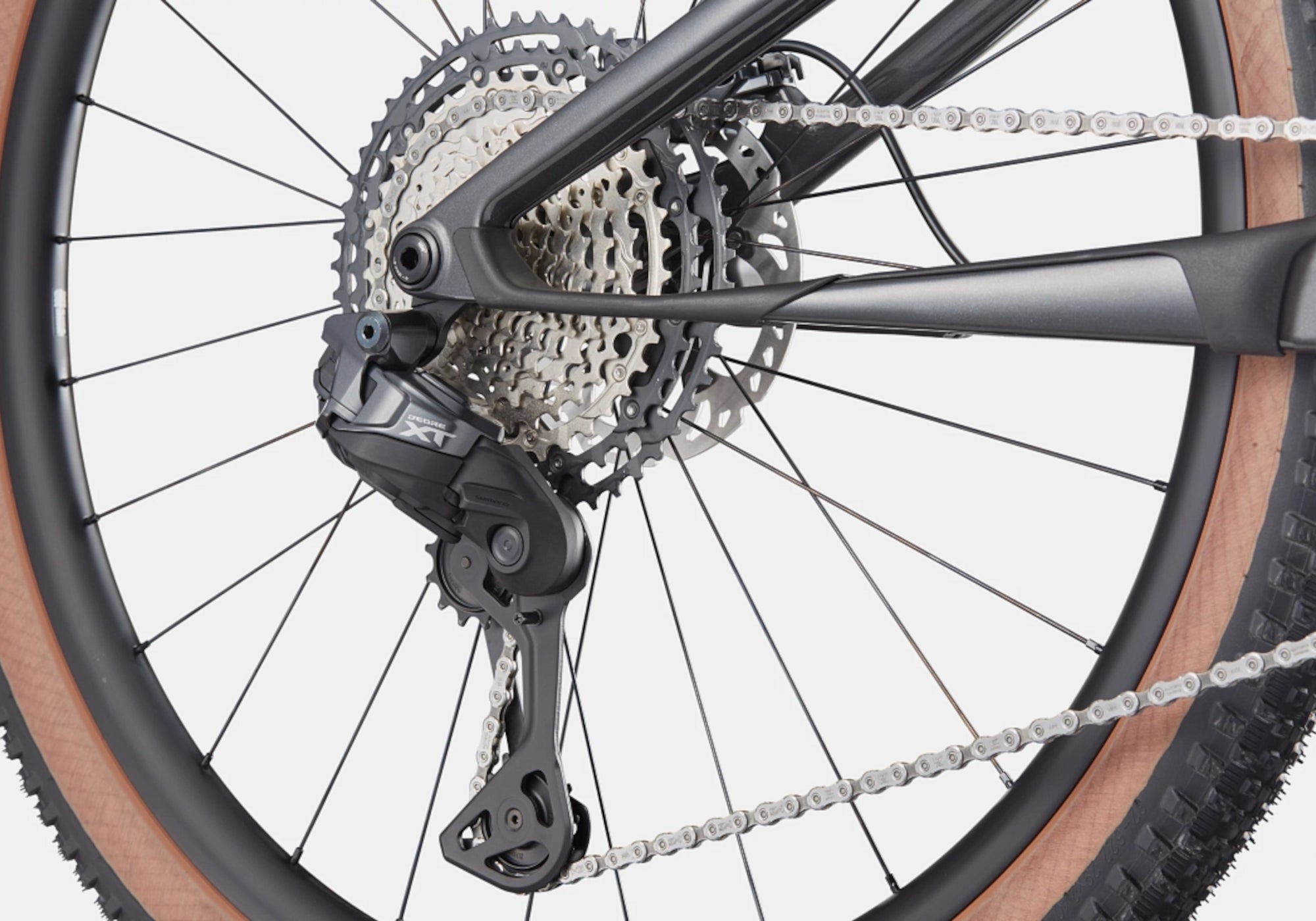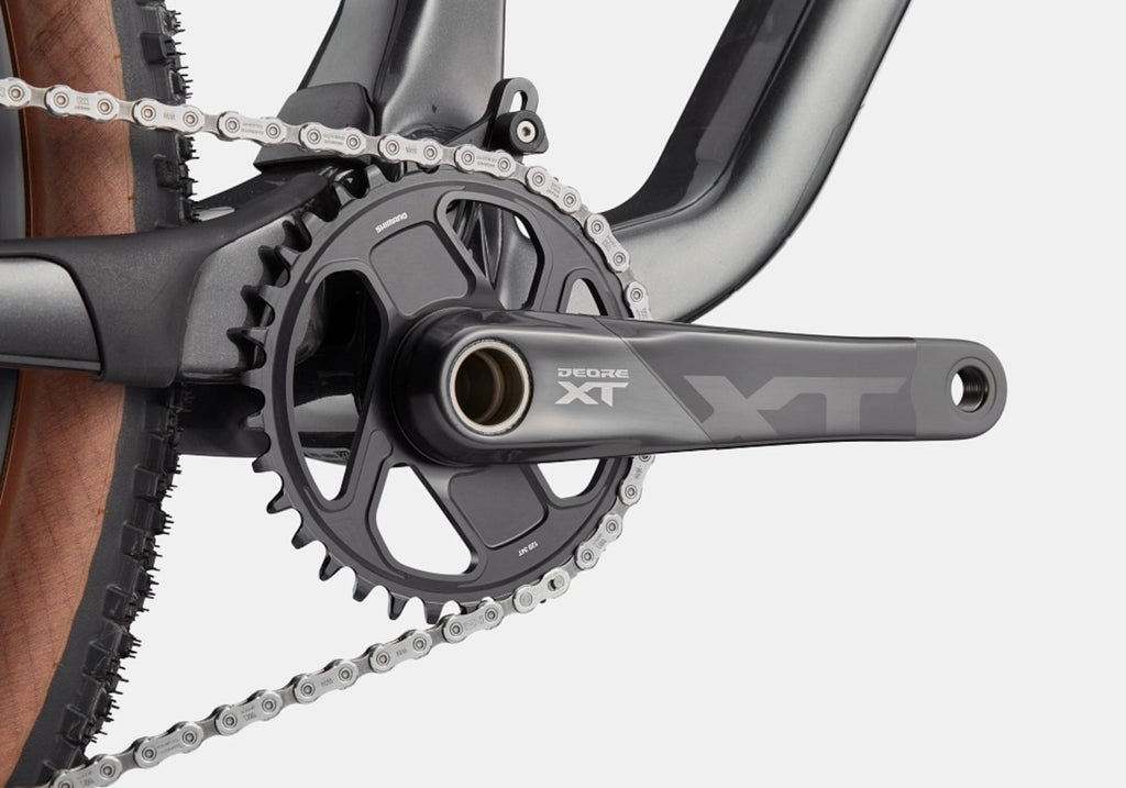 • Shimano XT Di2 Wireless Drivetrain – Crisp electronic shifts under pressure, leaving manual gears in the dust