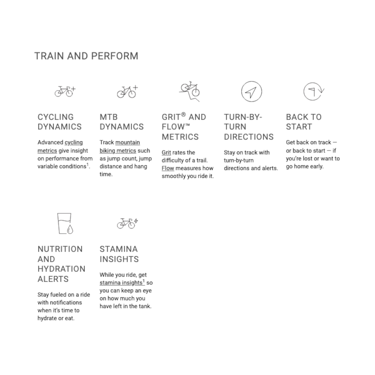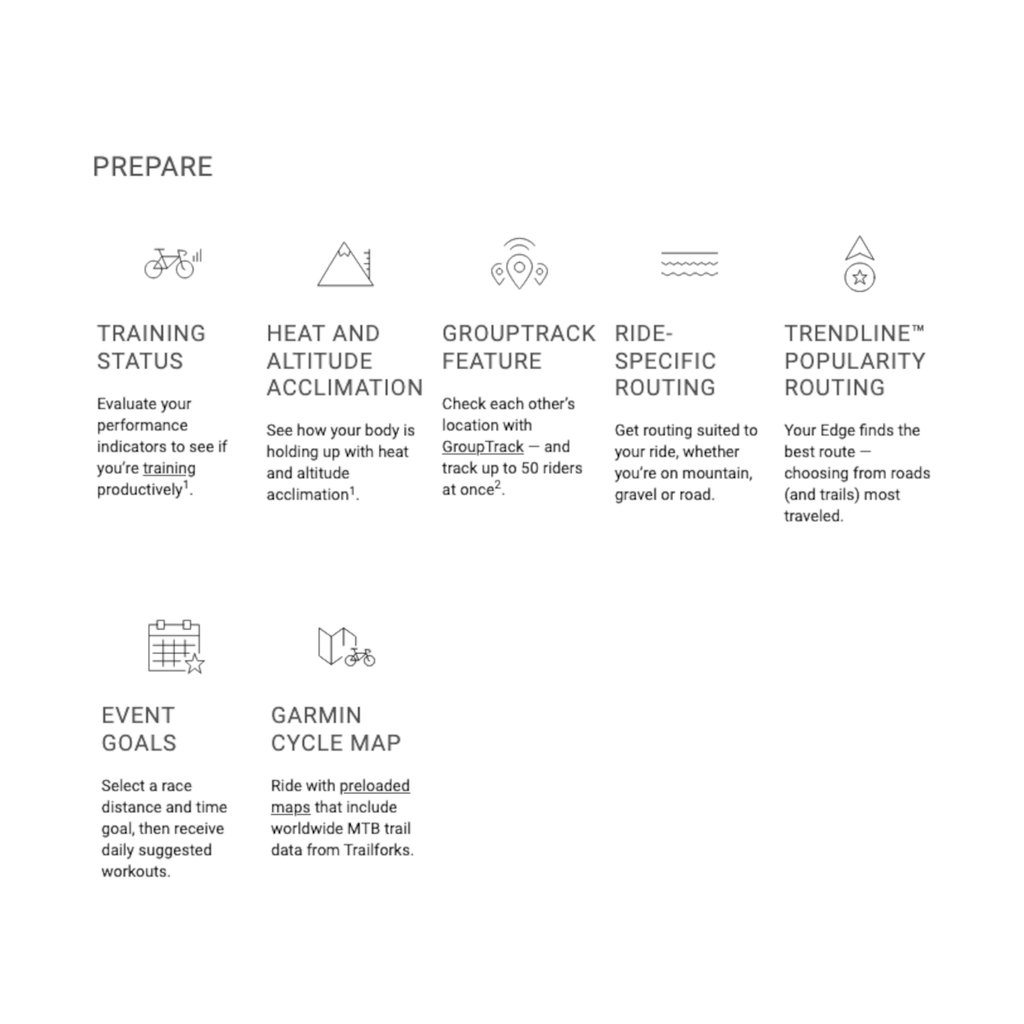 • Manage your efforts with the power guide feature, which recommends power targets throughout a course, when paired with your compatible power meter.