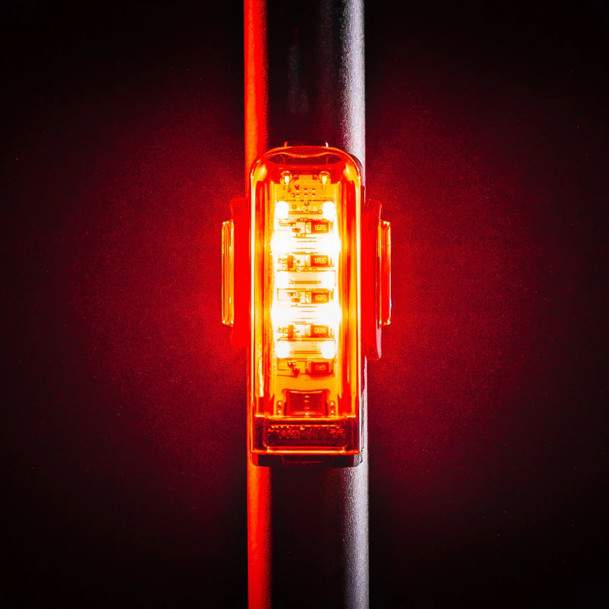 The light automatically detects brake events and intelligently changes output mode to Active Alert - a rapid 150-lumen flash “brake light” mode; signaling deceleration, effectively communicating your actions to traffic and fellow cyclists, enhancing rider visibility and safety.