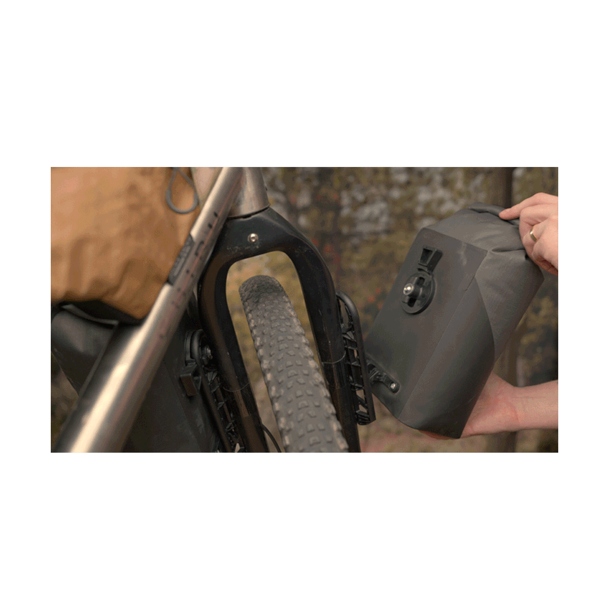These quick detach fork packs (or any 3-pack mount) are ready for everything! Sunshine or rain, your gear will stay dry and protected in these 100% waterproof, TPU fabric panniers with welded seams and Hypalon reinforcements.
