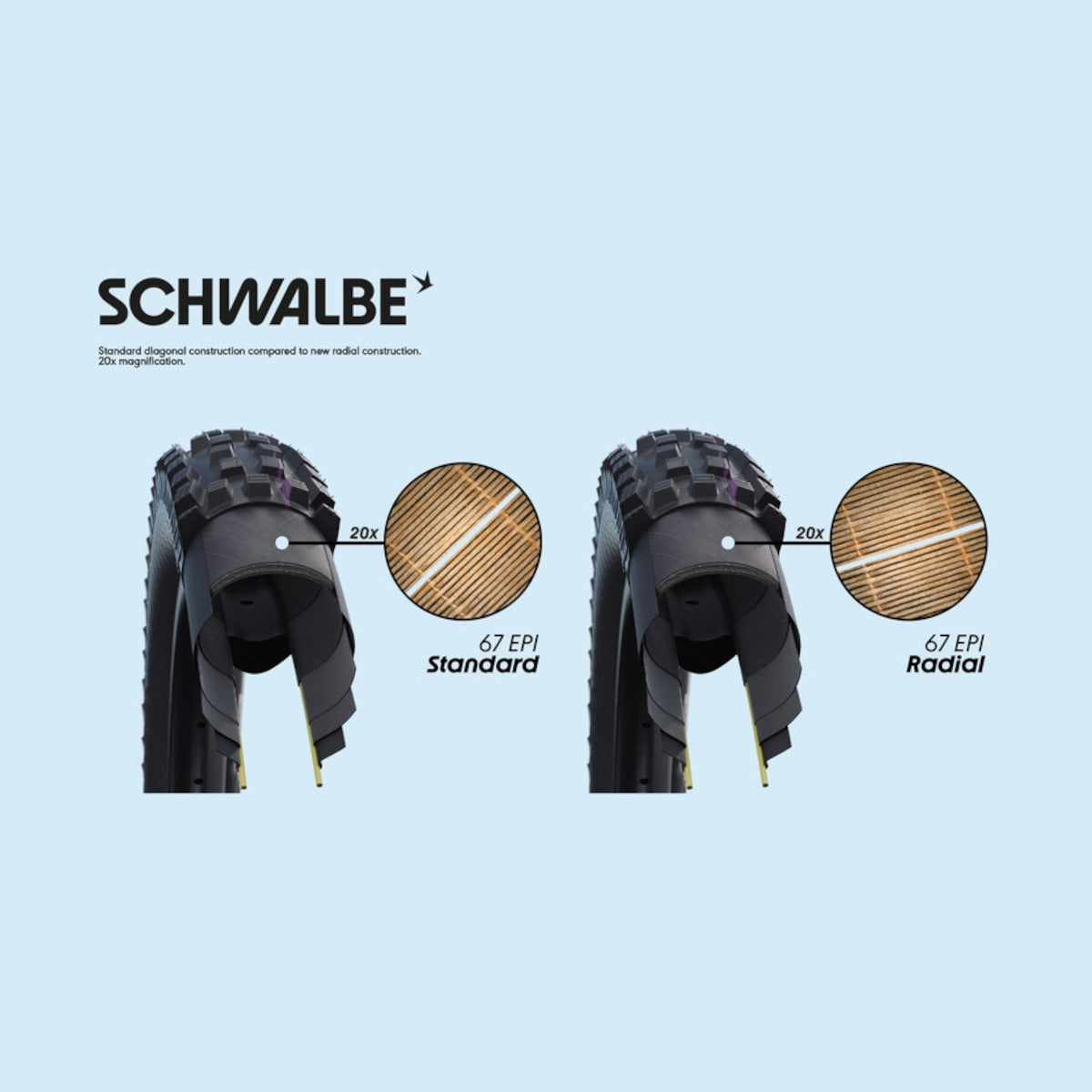 With its radial casing and optimized profile, the Schwalbe Albert Trail Pro Radial confidently filters out bumps and remains good-natured and easy to control at all times.