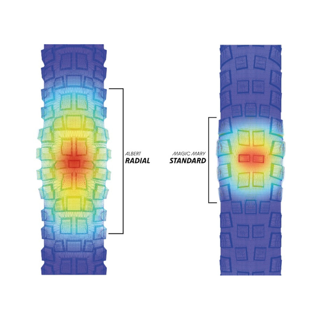 The increased contact area and the more flexible response behavior provide significantly more grip, more damping, more control and more comfort. The tire absorbs impacts better and uses the suspension travel more effectively.