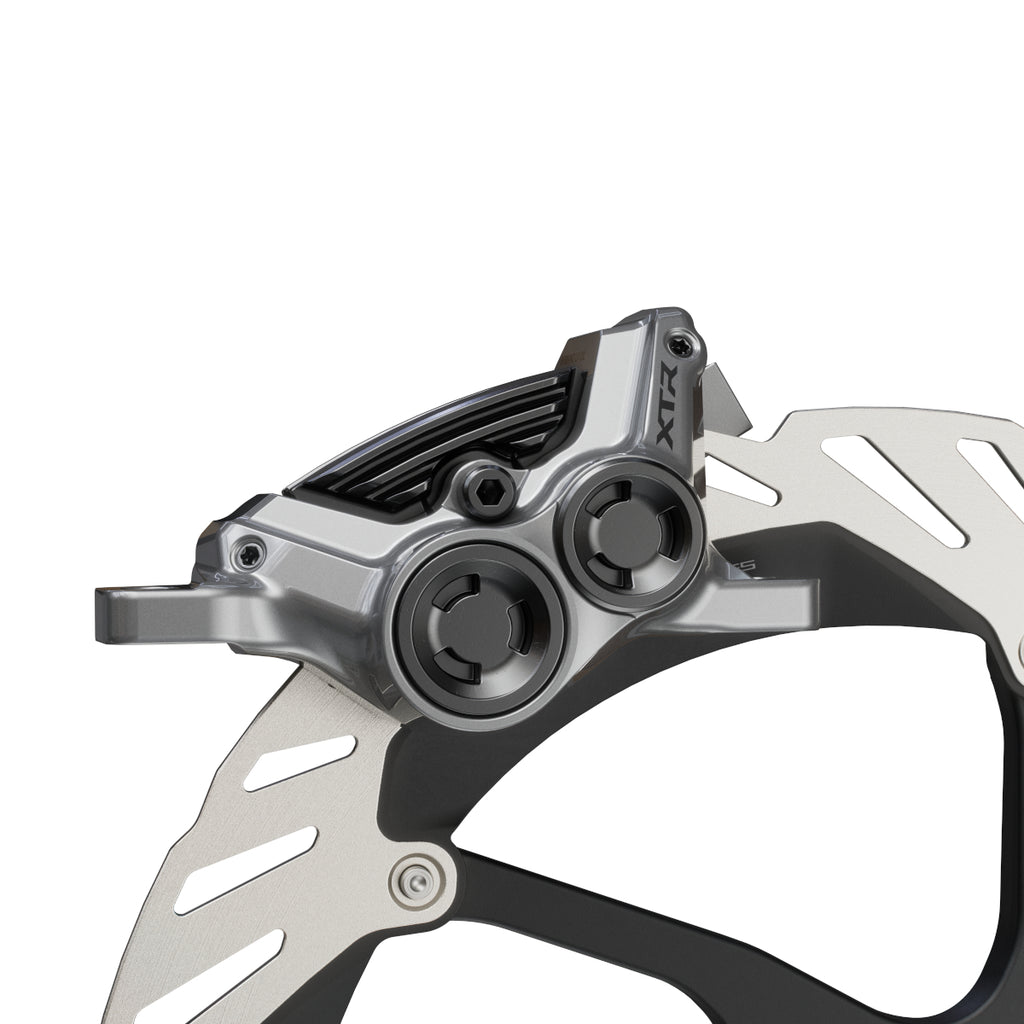 With ultimate stopping power, consistency and control, the 4-piston M9220 hydraulic caliper is the most powerful caliper in the Shimano XTR M9200 family. New low-viscosity oil keeps the pad contact point of the M9220 brakes constant in all trail and weather conditions, and new brake pads eliminate rattling noises caused by vibrations. Increased braking power and consistency paired with silence ensure precise control on rough trails.