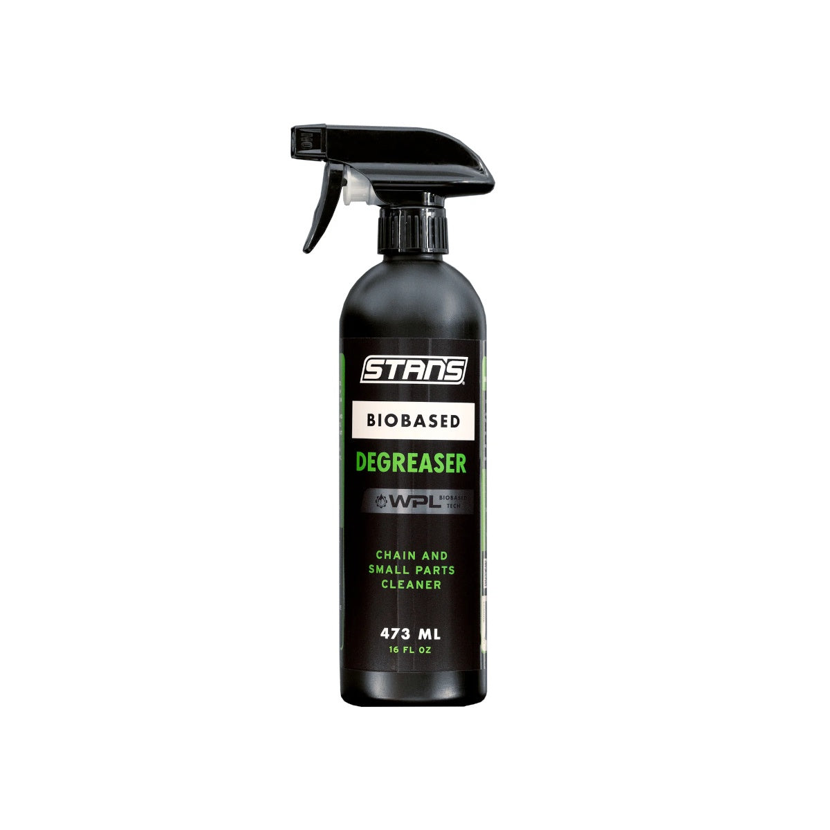 And, if you overshoot the target, Stan’s Biobased Degreaser is safe for all materials including carbon fiber, titanium, aluminum, steel, chrome, rubber, and plastic. Stan’s Biobased Degreaser will keep your drivetrain clean and the planet less dirty.