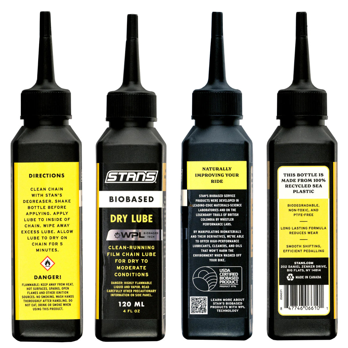 Stan’s Biobased Dry Lube doubles down on its effectiveness with class-leading surface-binding compounds that create a thin film around moving chain links to create unparalleled performance – allowing you to ride faster, longer, and cleaner.