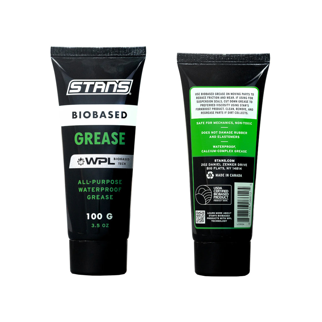 Stan’s Biobased Grease is an eco-friendly all-purpose lubricant for use in bicycle bearings, bushings, wheels, headsets, and more. Developed specifically for eco-conscious cyclists of all disciplines who demand uncompromising quality and reliability, Stan’s Biobased Grease bridges the gap between top performance and environmental responsibility.